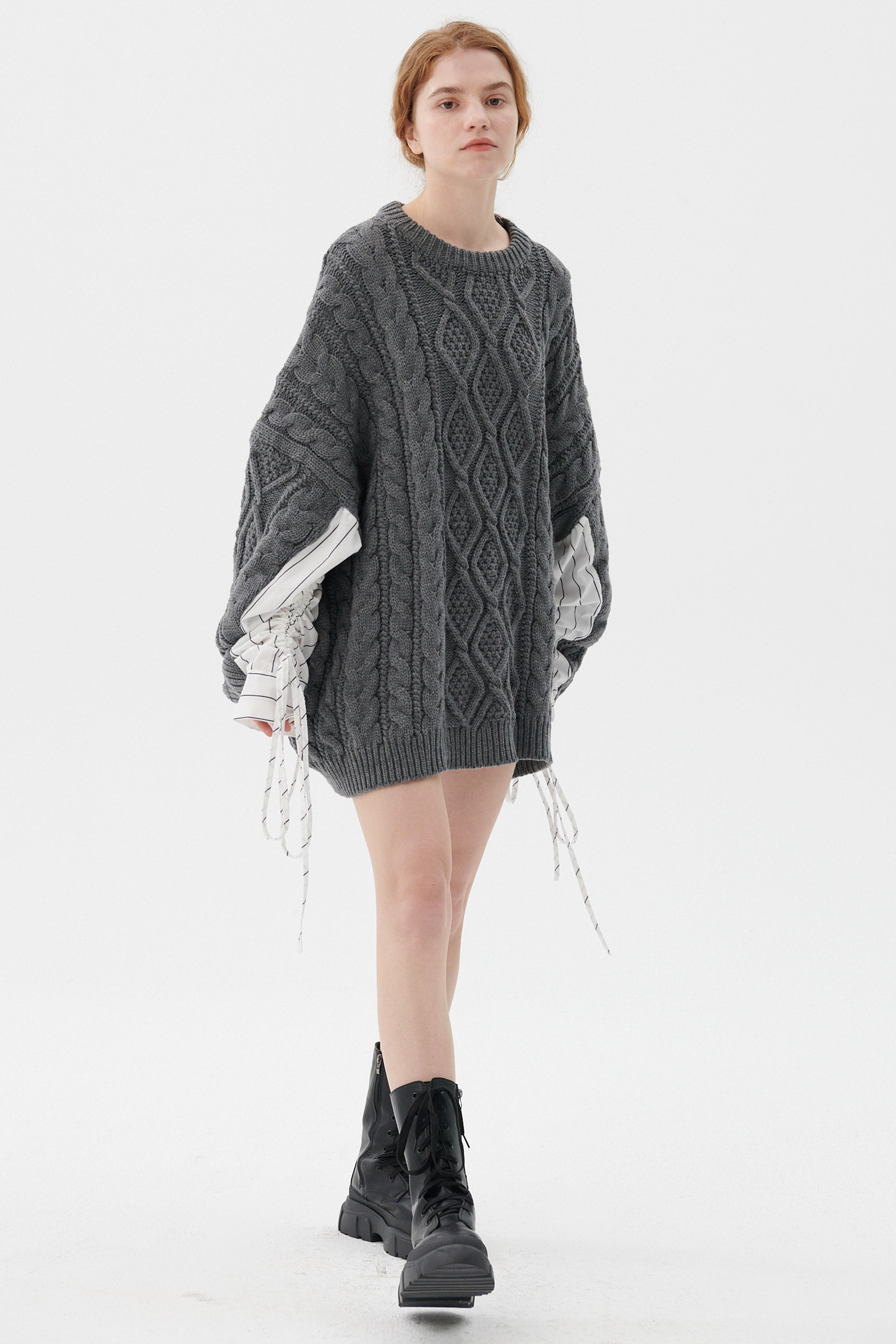 Loose fit, oversized cable knitted sweater vest Product Specification : 100% Acrylic Professional Clean Only / Do Not Tumble Dry […]